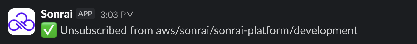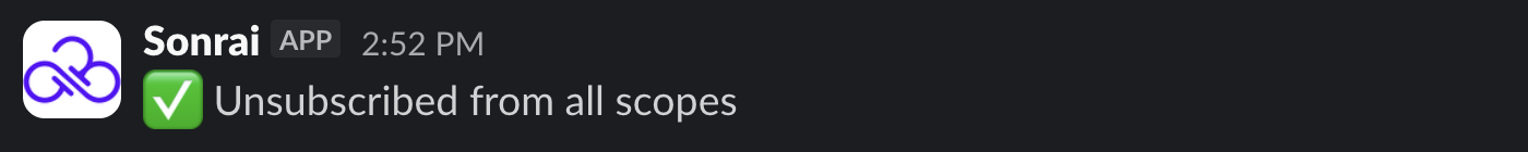The Sonrai app will attempt to remove the subscription for the specified scope, and then return a confirmation once done.