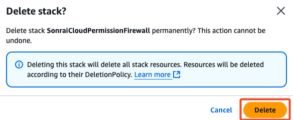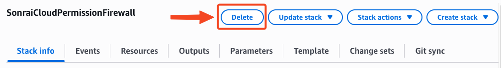 SonraiCloudPermissionFirewallstack in AWS Cloud Formation.Click the provided link to be taken to your CPF Cloud Formation Stack directly, or locate your stack manually in Cloud Formation.
