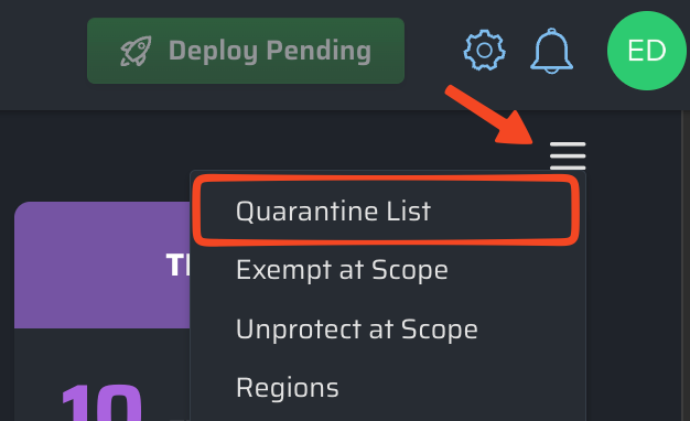| Resource Layer | Account | Project | Use the scope dropdown to select an AWS Account or GCP Project and quarantine all zombies within |