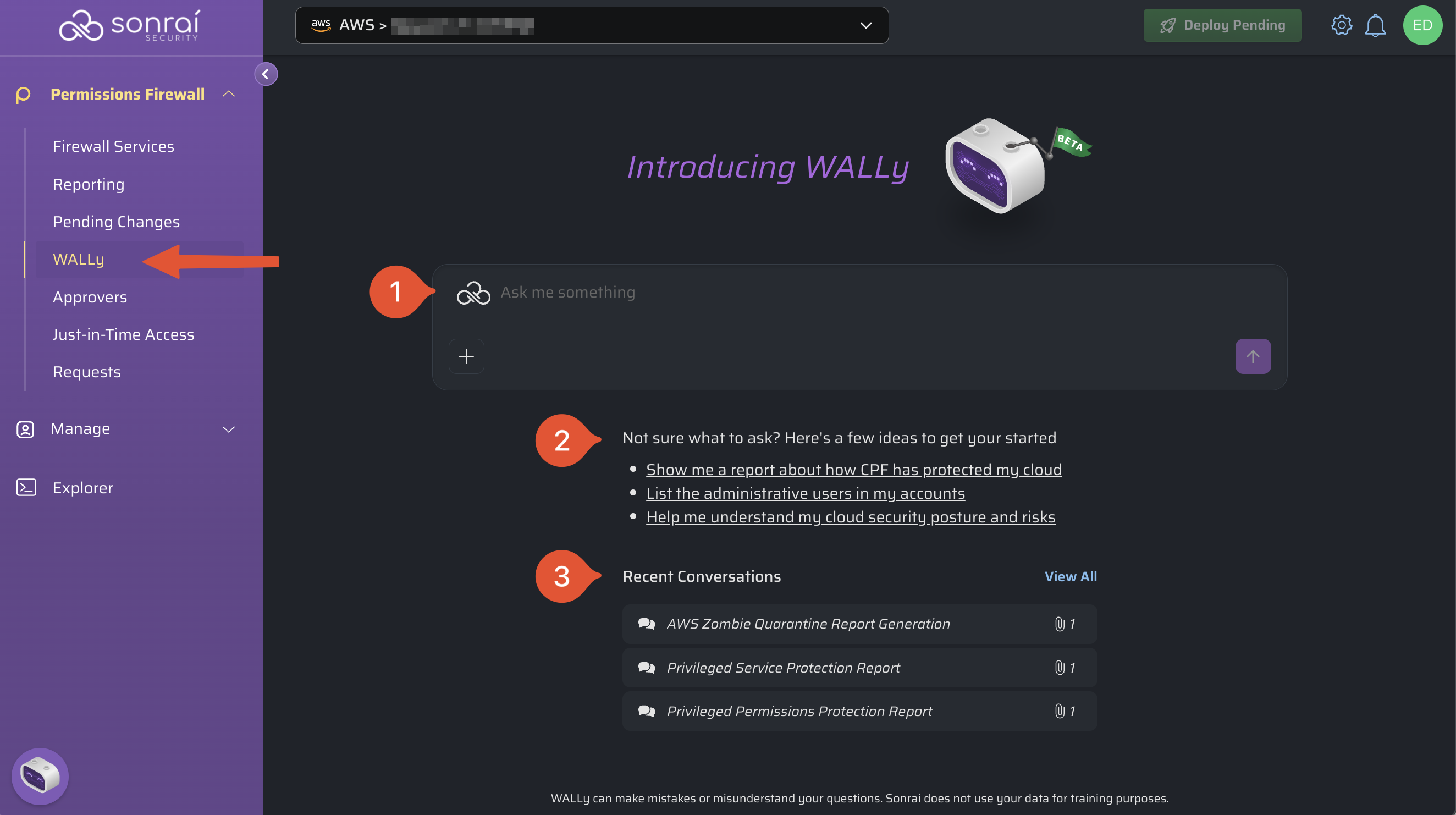 WALLy is a custom-built, AI-assisted chatbot who will help you quickly identify and fix privilege risk. WALLy works directly with Sonrai’s Cloud Permissions Firewall (CPF), using native IAM controls (AWS SCPs and GCP org policies) to enforce decisions safely and transparently.